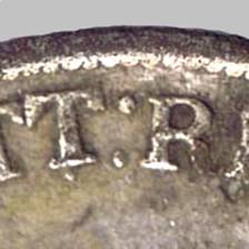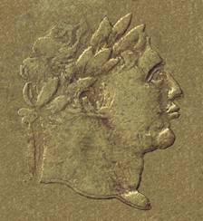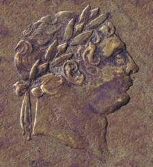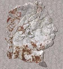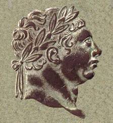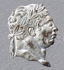 1st bust Punched completely hair curls engraved Middle leaf in 1st section of laurel wreath slightly to the