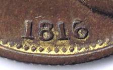 Mix of hand engraving and punches. Sharply cut neck. 1816: C601o, C602o