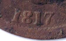right pointing to the leaf above the ear. Ribbons closely together. 1817-1820 |