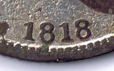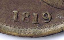 Mix of hand engraving and punches. Crude messy hair curls. 1818: C803o 1819: C901o, C902o |